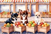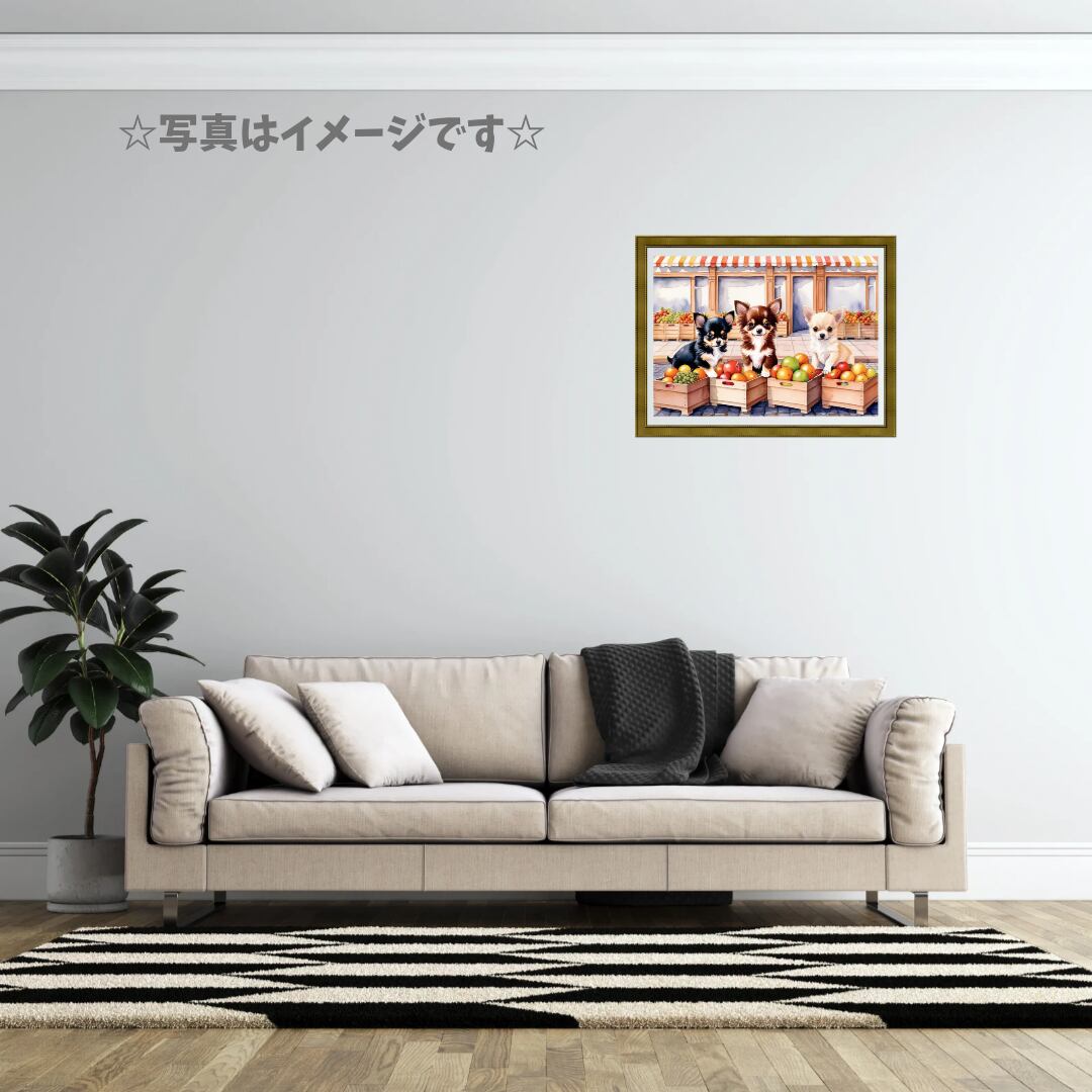 ☆A3 根気があれば大丈夫!《チワワの果物屋さん》ポメ&チワワを描くダイヤモンドアートキット 犬 チワワ モザイク画 モザイクアート
