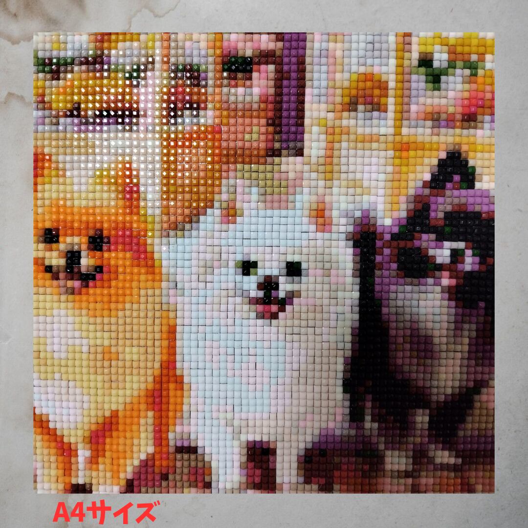 ☆A3 根気があれば大丈夫!《コスモスとポメラニアン》ポメ&チワワを描くダイヤモンドアートキット 犬 ポメラニアン モザイク画 モザイクアート