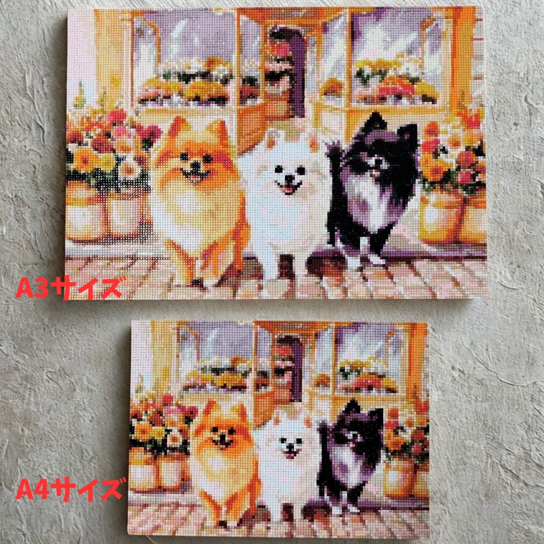 ポメラニアン・チワワ・(たまに猫)をモチーフにした 当店オリジナルのダイヤモンドアートキットです。