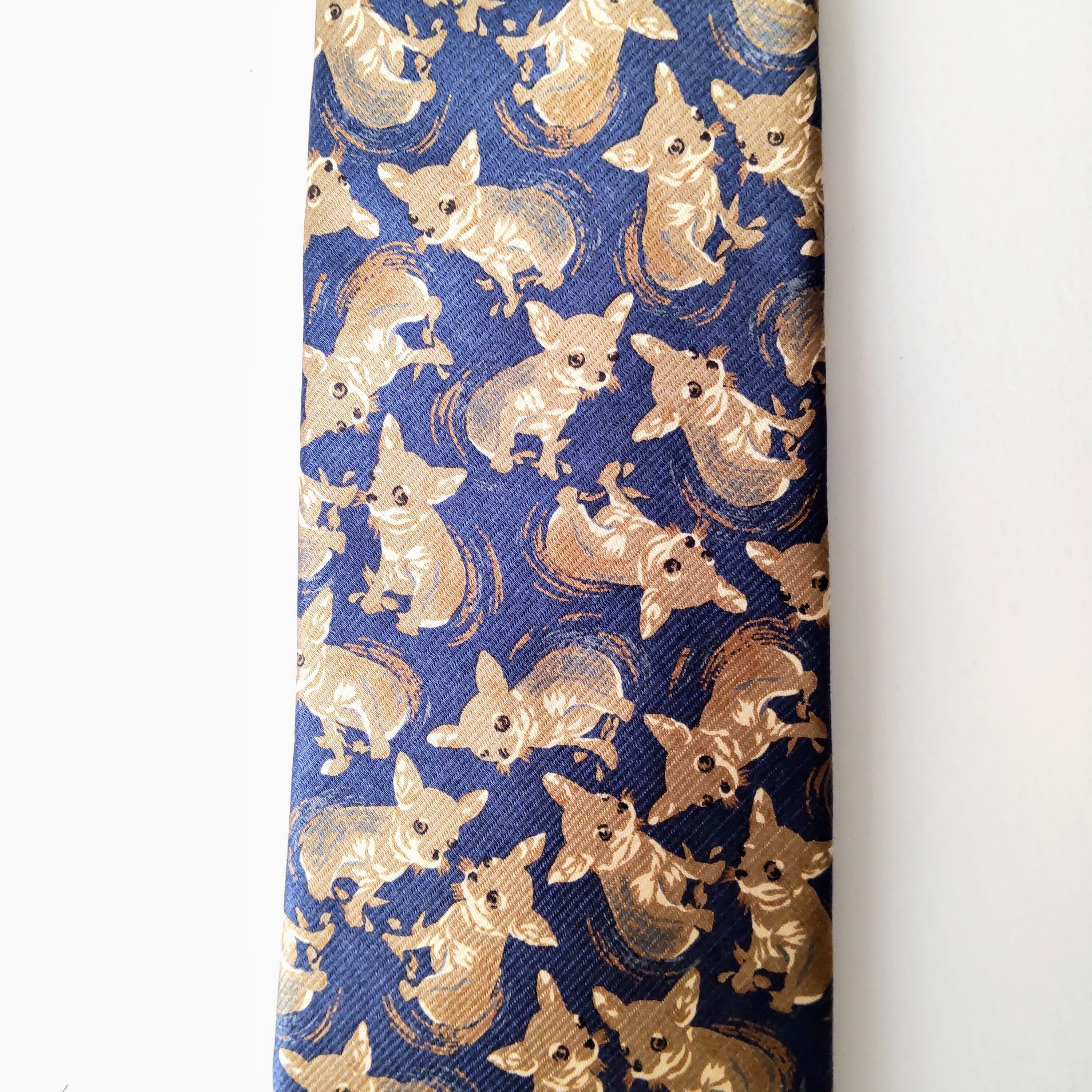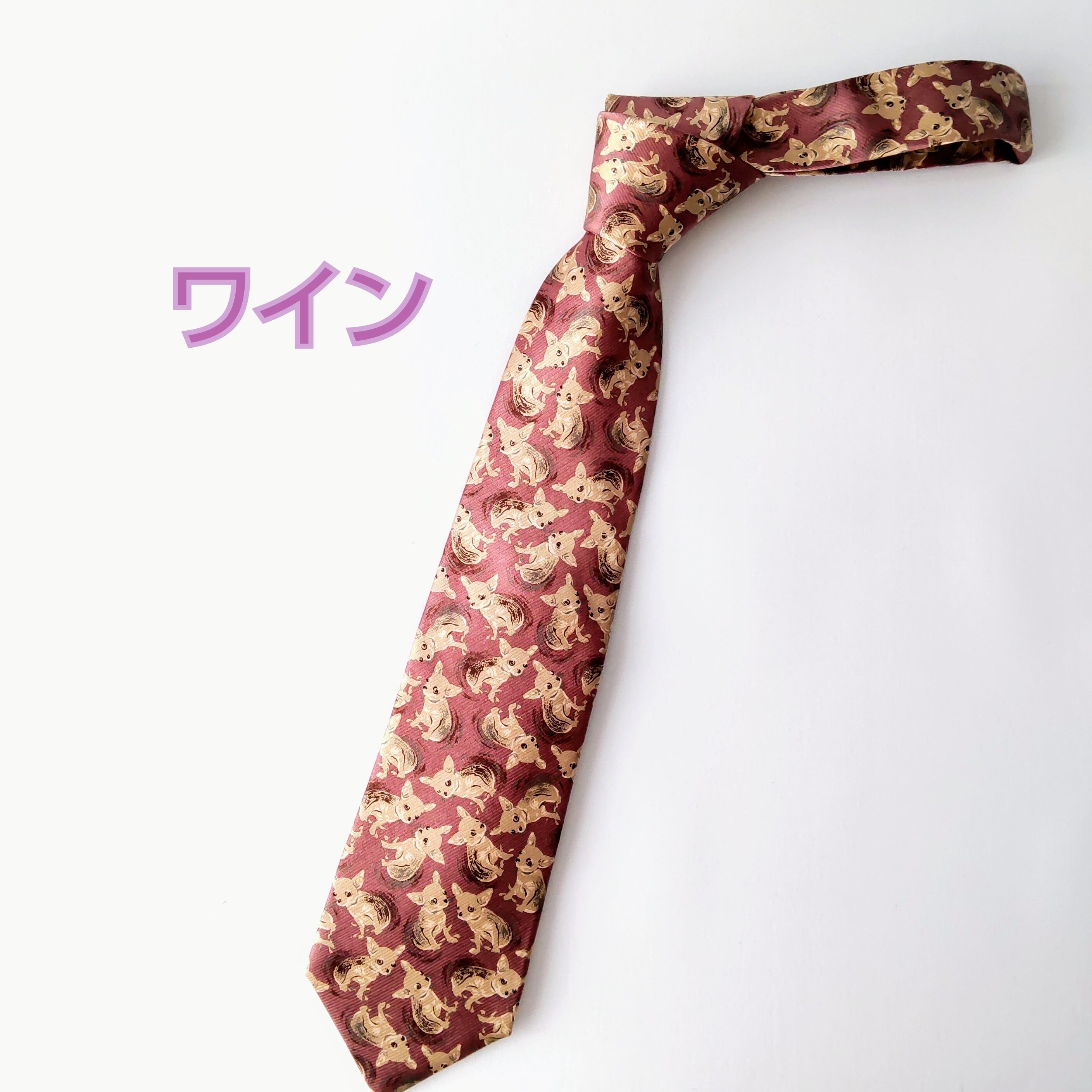 ☆ネクタイ☆チワワ柄 Dog pattern tie [犬 チワワ柄 個性的 ネクタイ シルク100% おしゃれ]