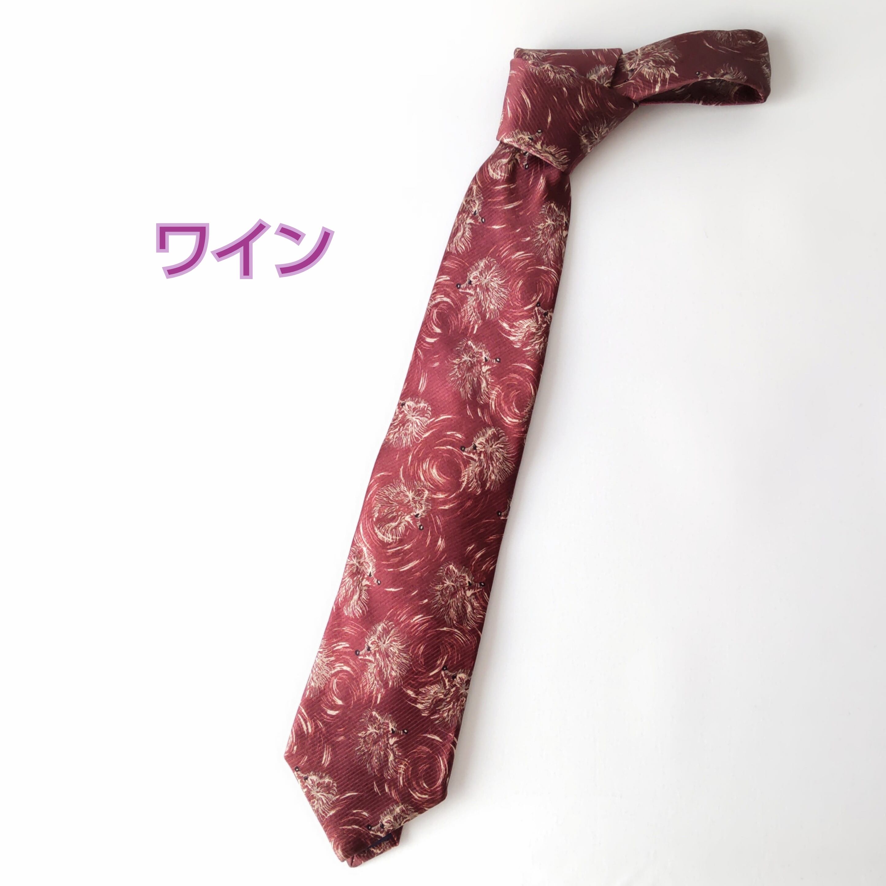 ☆ネクタイ☆ポメラニアンの横顔 Dog pattern tie [犬 ポメラニアン柄 ネクタイ さりげない おしゃれ]
