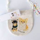 ミニ巾着☆2匹のチワワ【犬 チワワグッズ ブラタン フォーン 巾着袋 ミニ巾着】