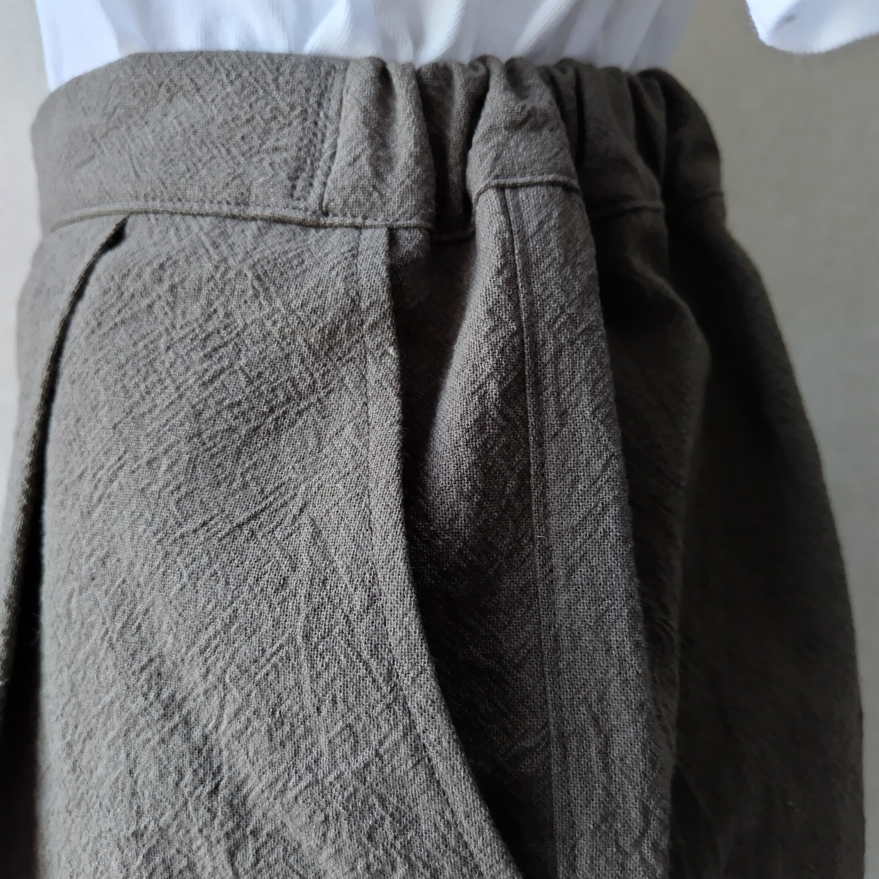 身長が150㎝前後、既製服のウエストが70サイズ前後(実寸のヌードサイズが80㎝前後)の方に合わせて作ったワンタックパンツです。
