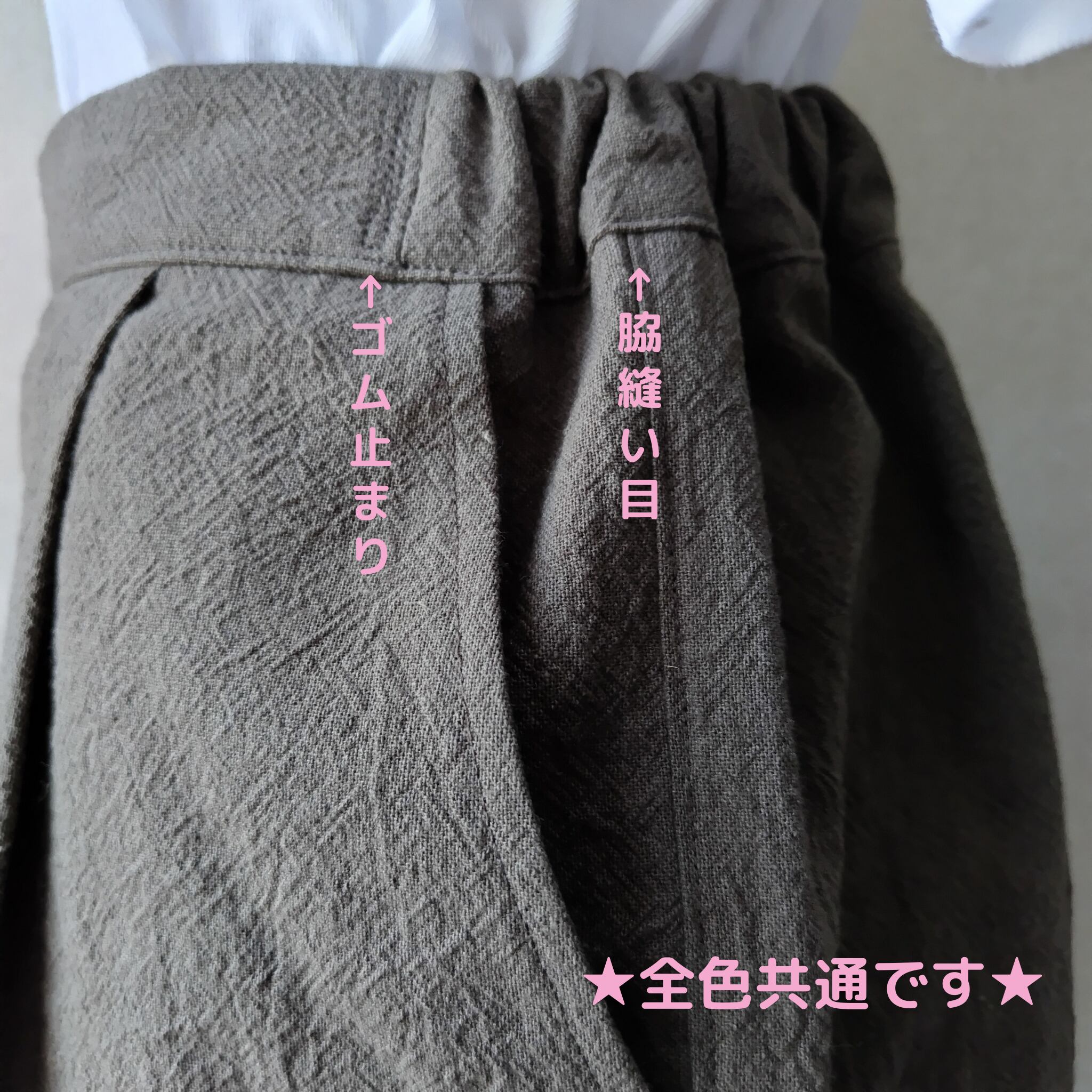 ウエストは ぽっちゃりお腹でもずり落ちにくいように深履きにして、後ろ部分~少しだけ前部分にも回り込んでゴムにしてあります。