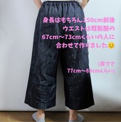 既製のパンツ67~73サイズの方を想定して制作しましたが、ゴム入りなのでもうワンサイズ上の方でも履いていただけるかと思います。