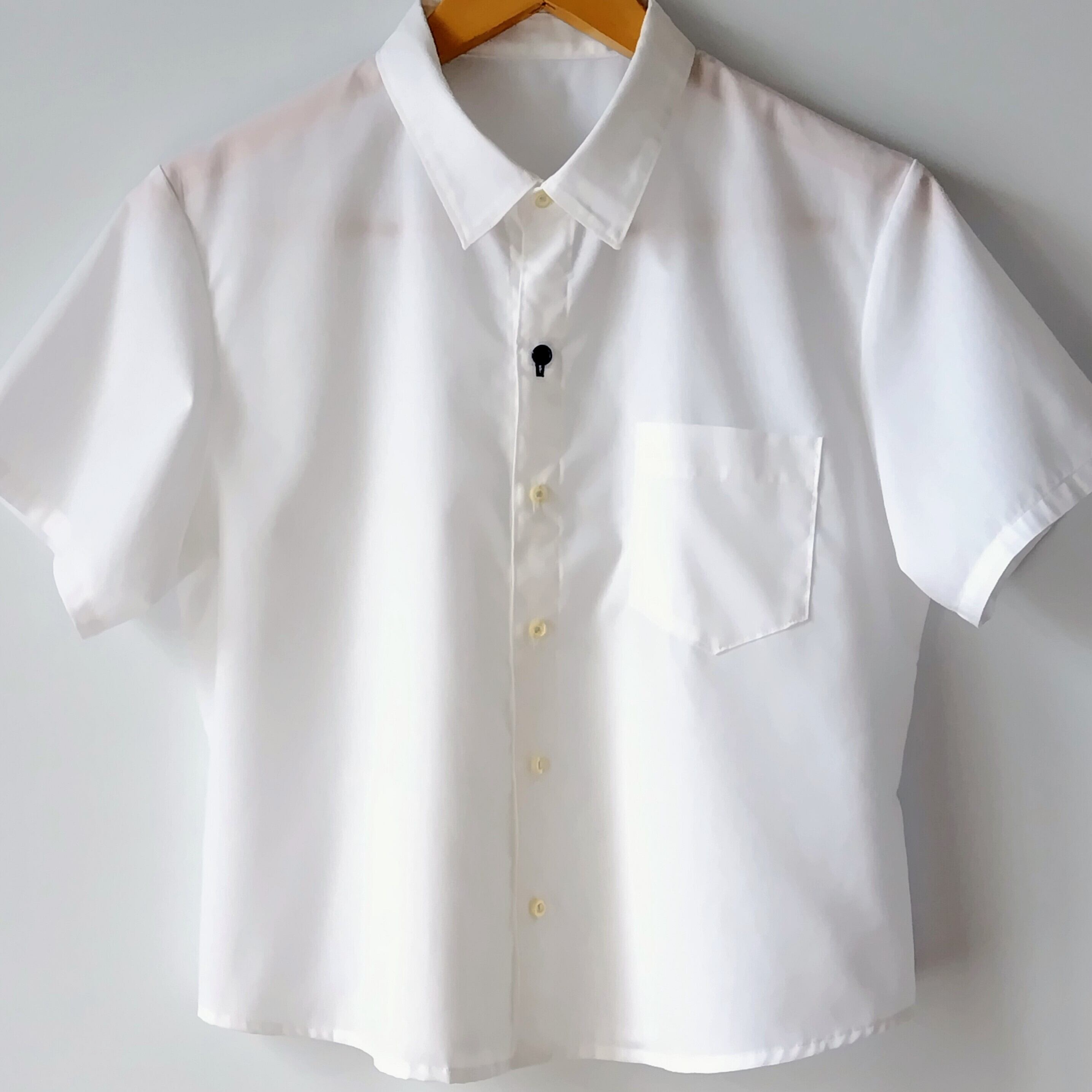 ◎肩落ちのゆったりとしたシャツが流行している昨今ですが、あえて制服のようなシンプルなシャツを作ってみました。