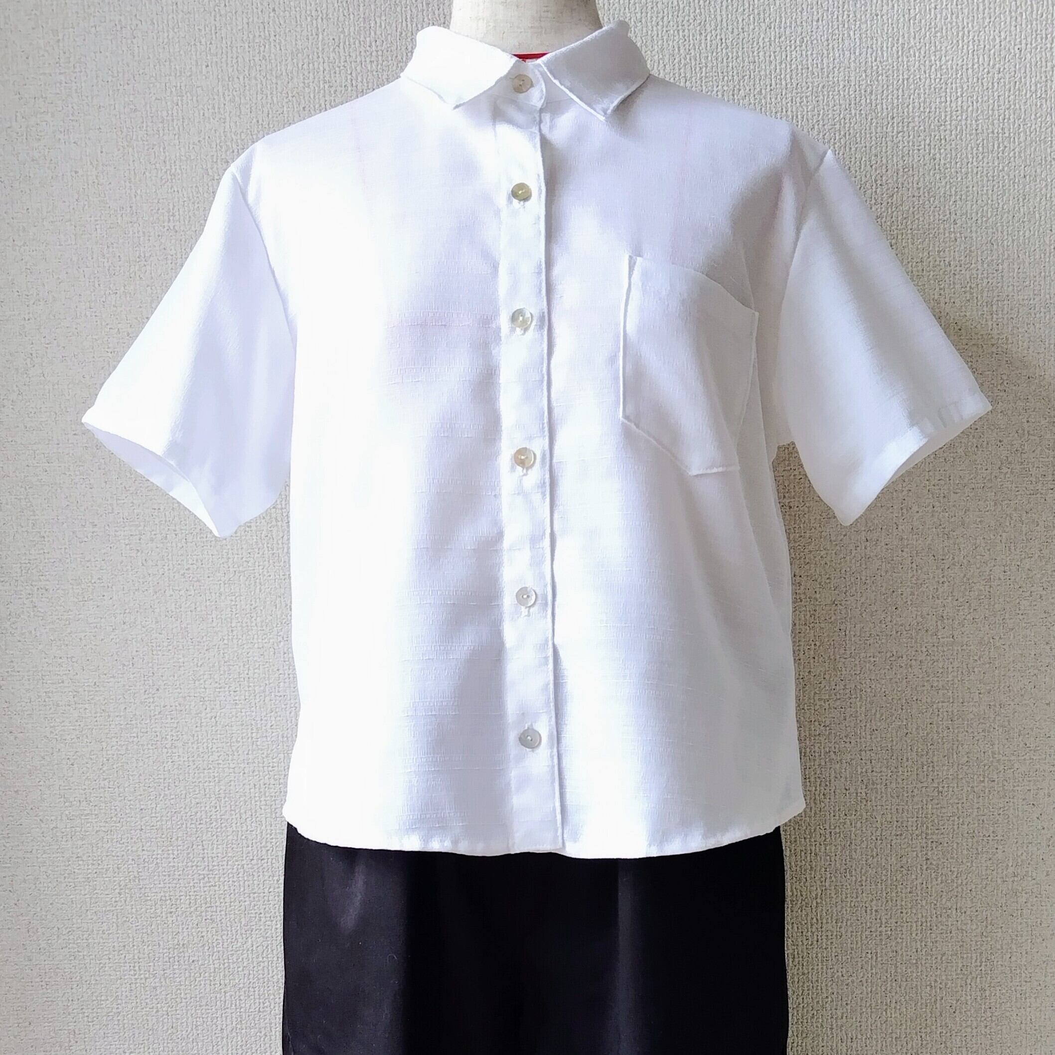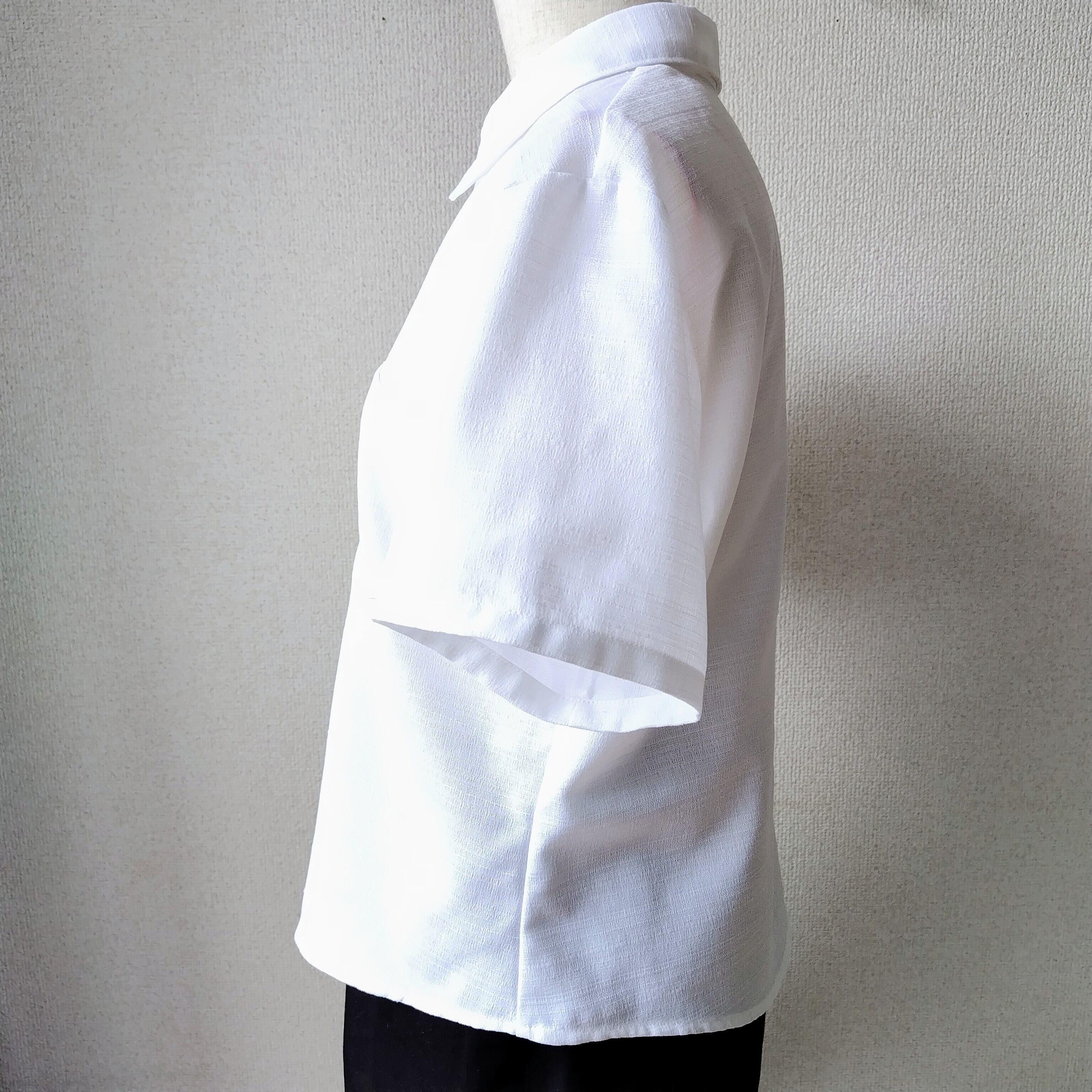 150cm de L倶楽部☆変り織り生地のシンプルシャツ☆ [低身長 Lサイズ 綿ポリ シャツ 白シャツ]