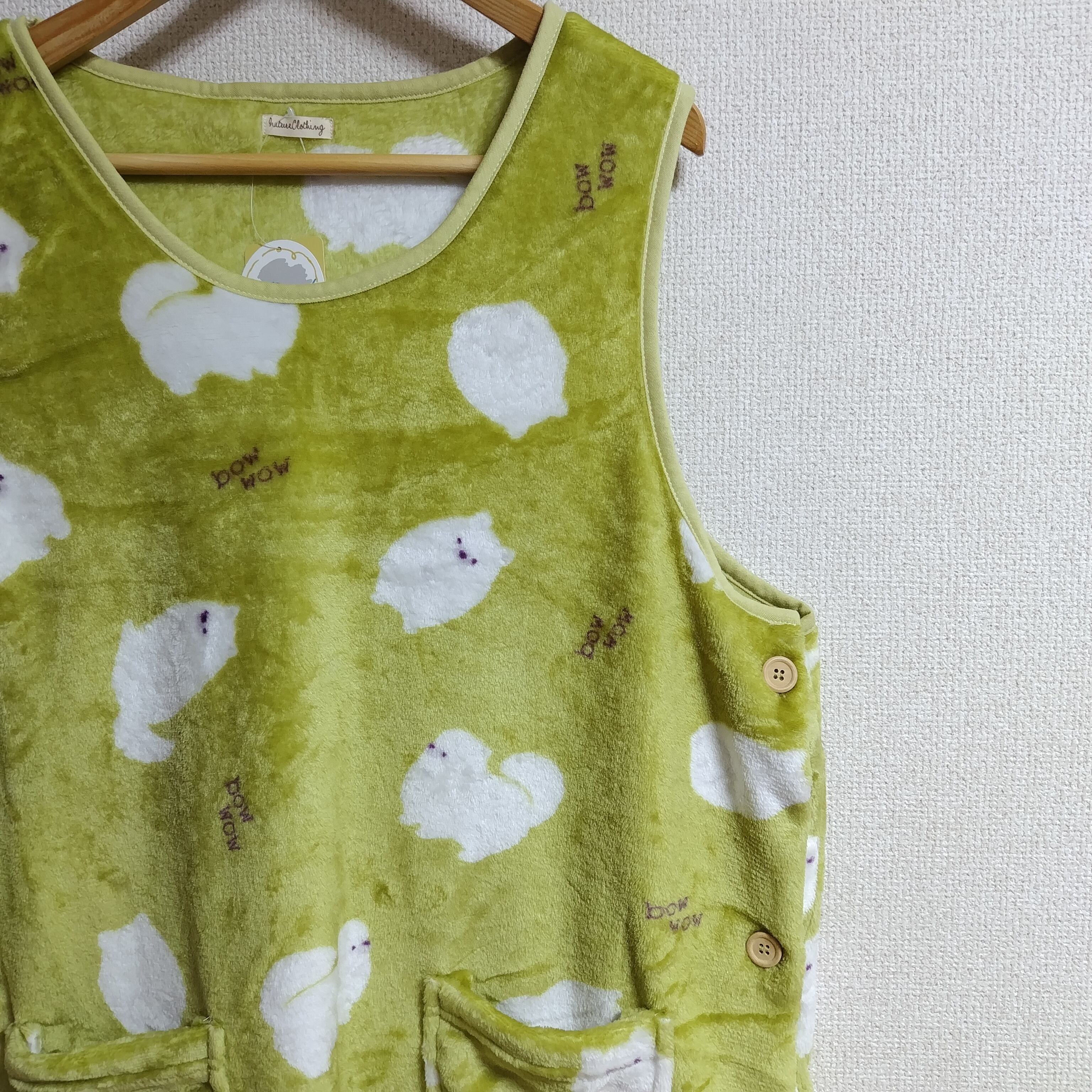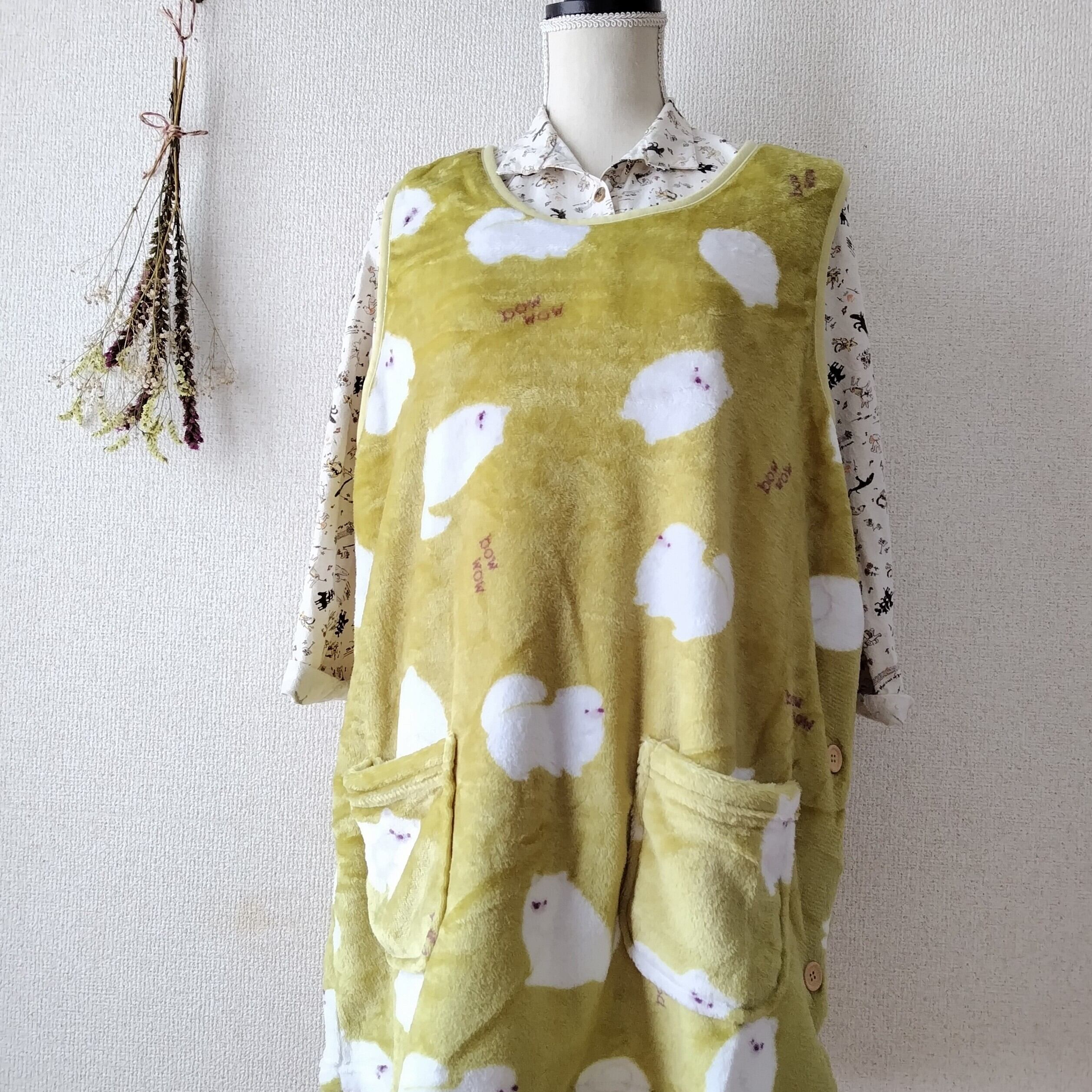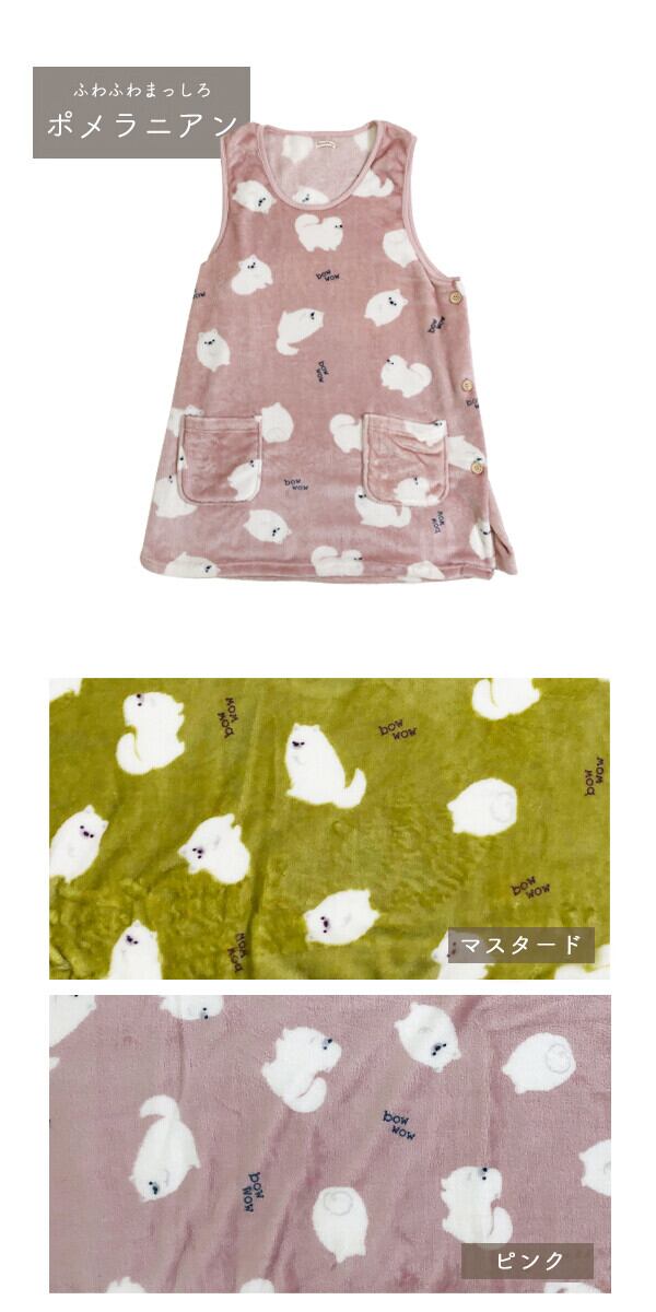 ☆暖かフランネルエプロン☆ポメラニアン柄☆ [犬柄 ポメラニアン柄 フリースエプロン 防寒対策 ルームウエア ]