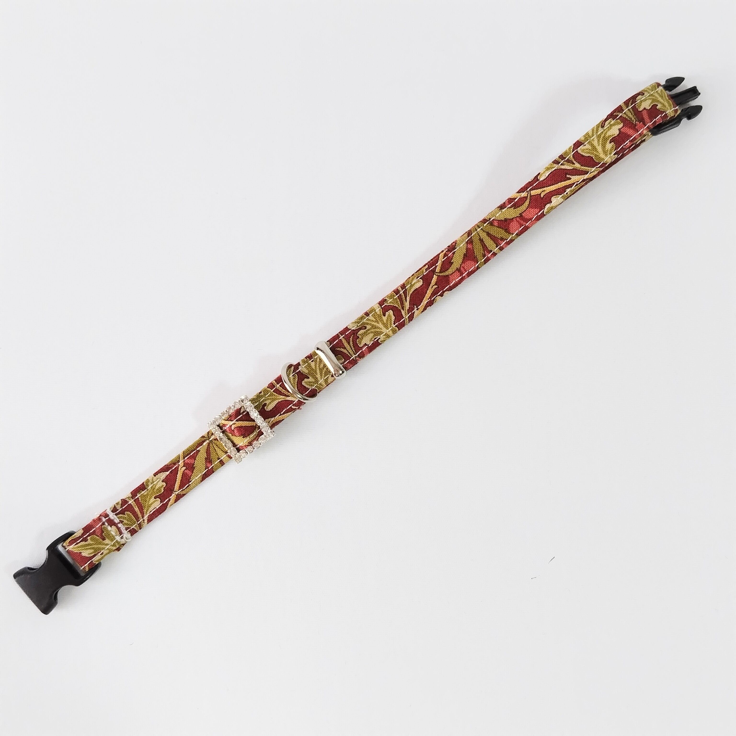 この首輪はウィリアムモリスデザインのモダファブリックス製の生地を使用しましたので、華やかでオシャレな雰囲気に仕上がりました。