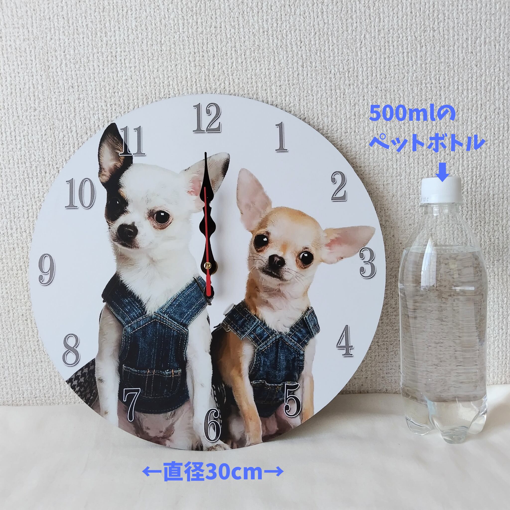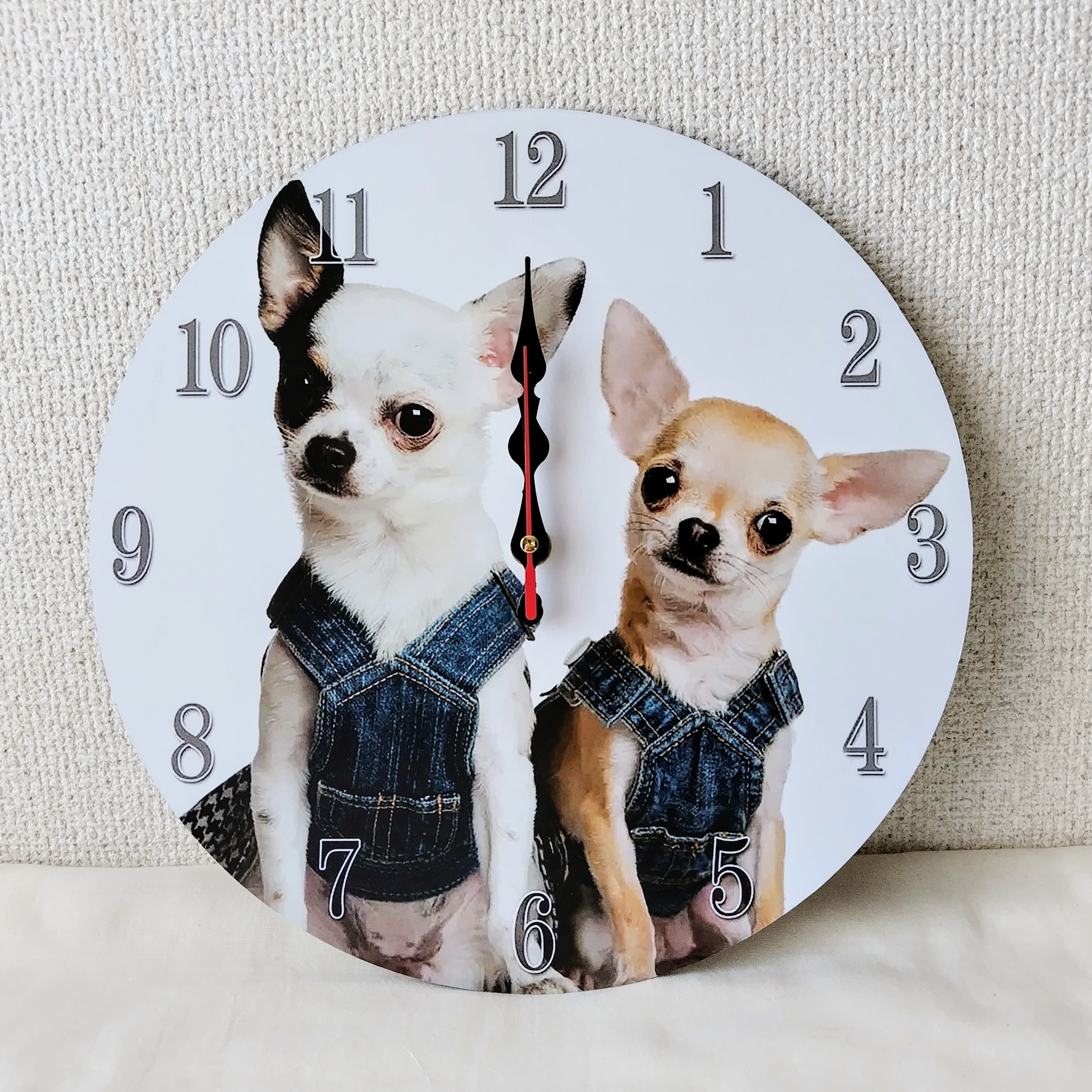 2匹のチワワの掛け時計 [犬雑貨 チワワグッズ 掛け時計 静音設計]
